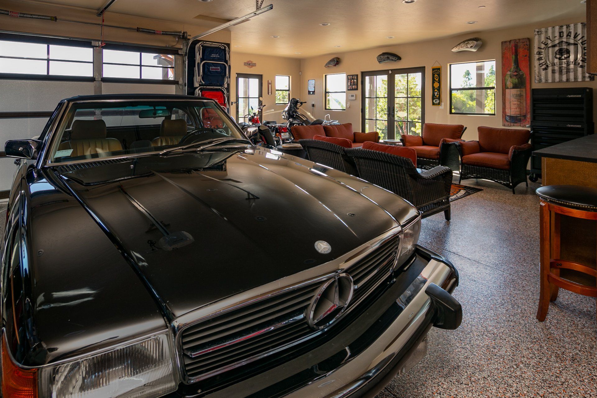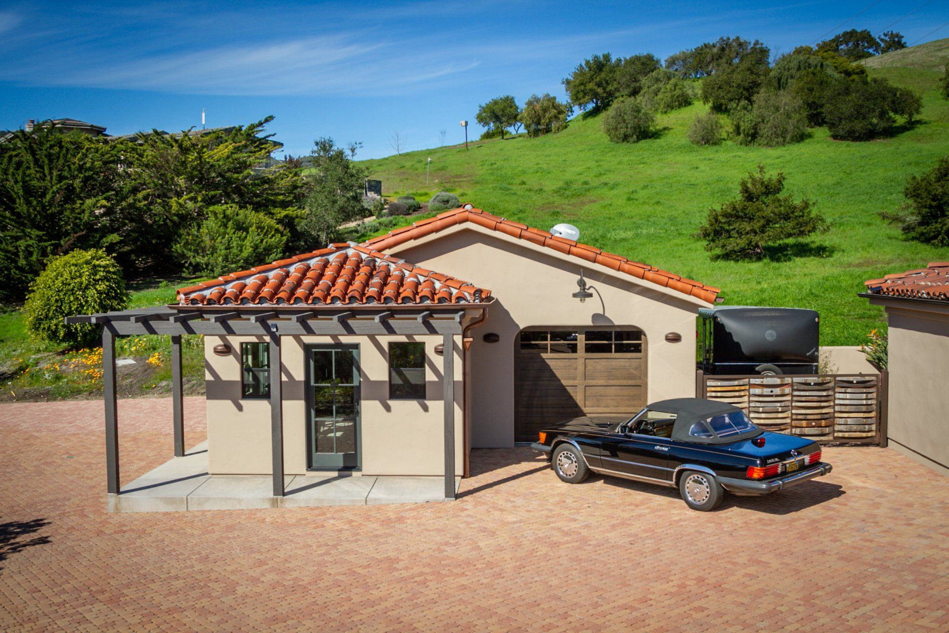 The addition of a 700 sq. ft. garage and workshop to an existing home. The new garage would be the first building seen when coming up the driveway, so it needed to be welcoming and set the tone for the approach to the house.